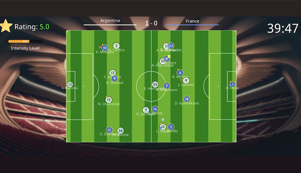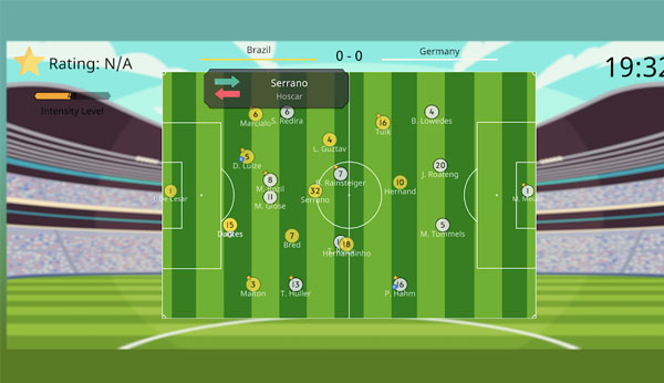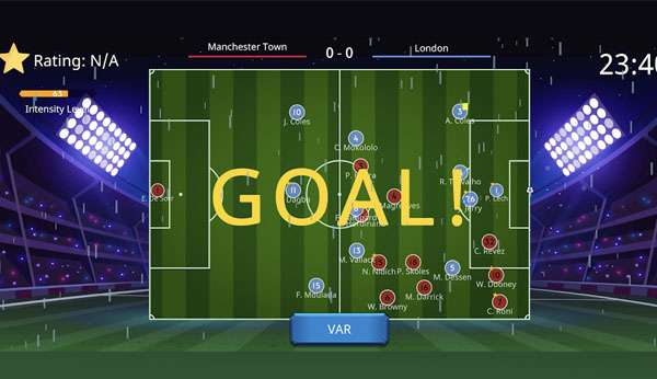 Upon each match, you observe simplified 2D match scenes or text descriptions of developing incidents.