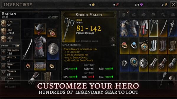 Generous loot system and gear variety with many legendary items, gems, and upgrade paths.